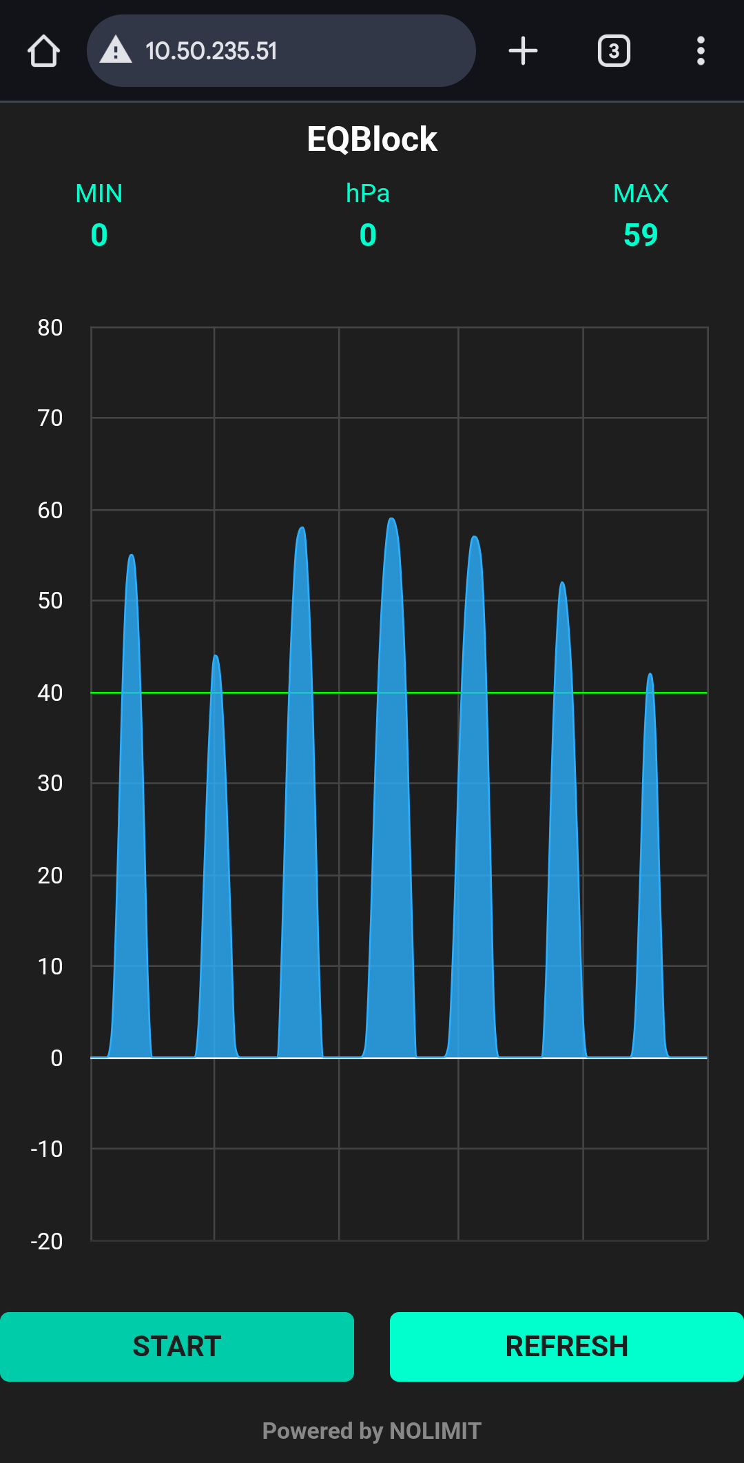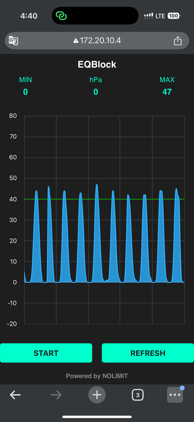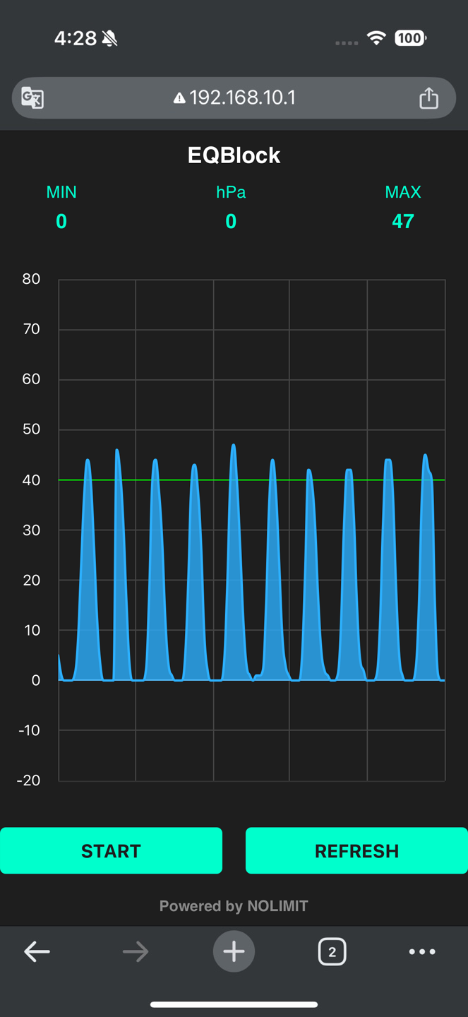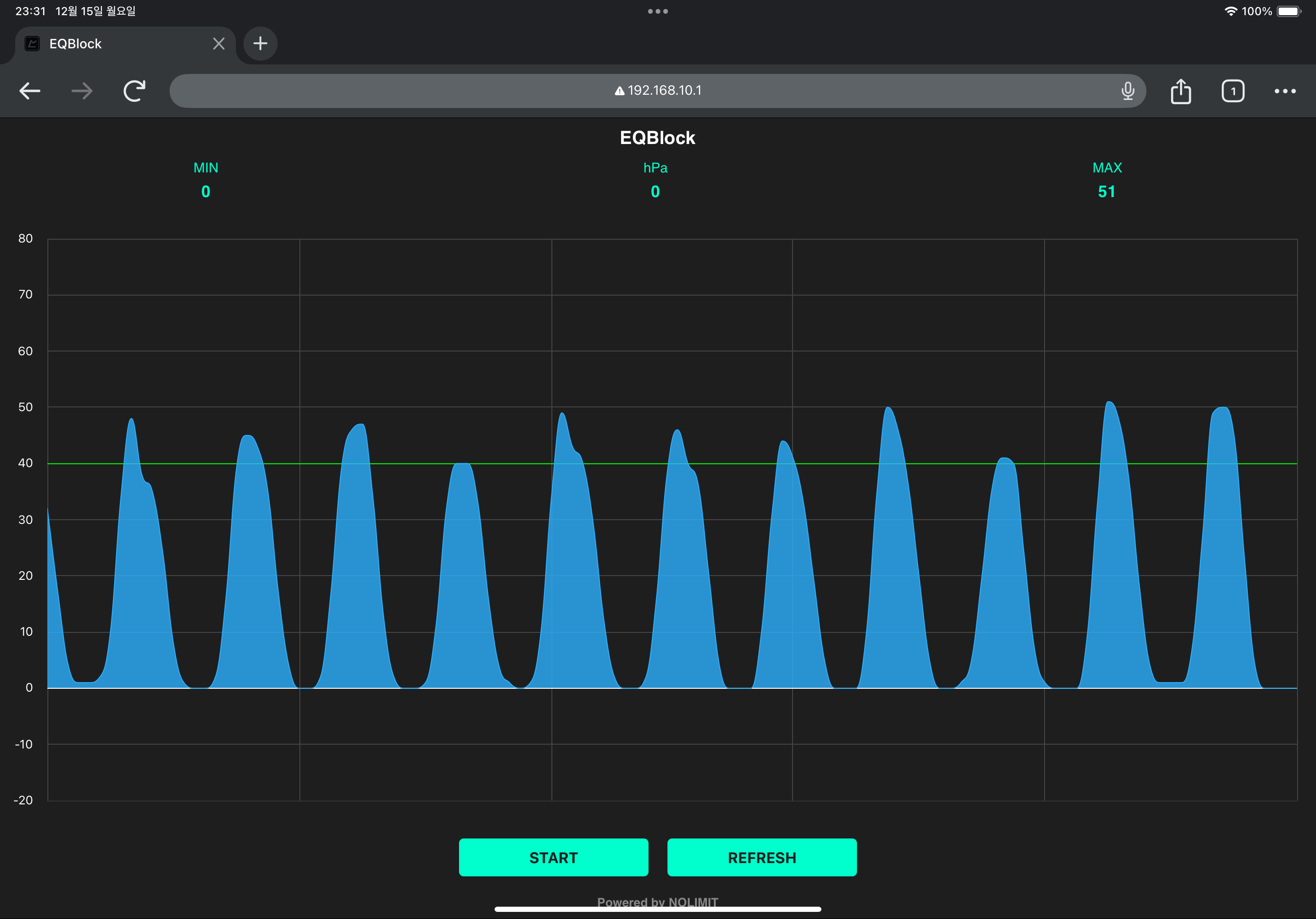 3. 그래프 화면이 표시되면 "START" 버튼을 눌러 압력 체크를 시작합니다.