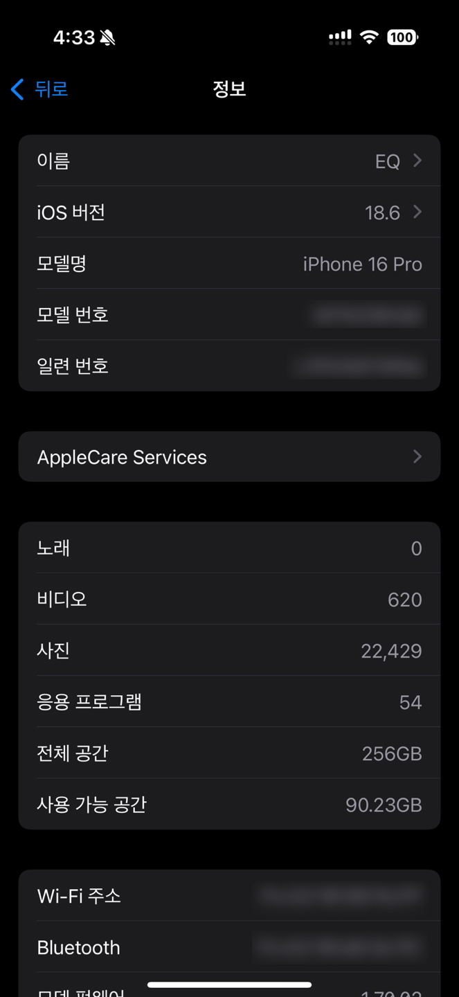 1. 스마트폰에서 핫스팟을 켜고 설정의 일반 메뉴에서 정보로 이동합니다.